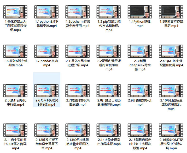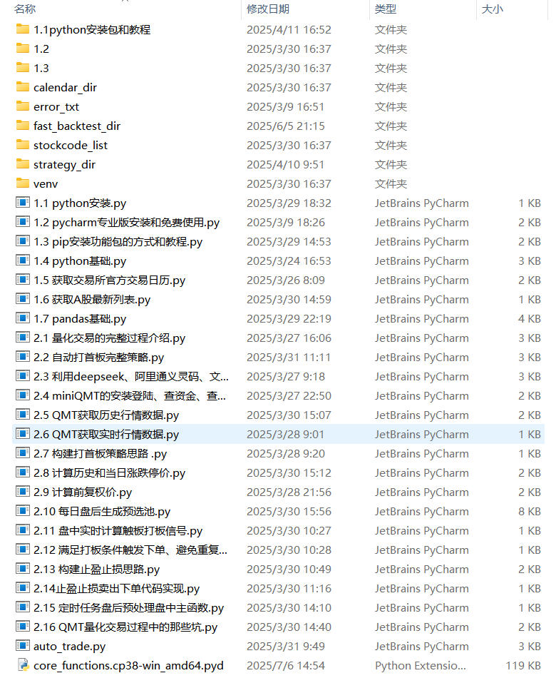 主讲人拥有强的python编程能力,比如涨停客服务端采用的是python语言,我们有大量的数据获取、清洗,策略回测和实盘部署的python源码,我们代写超过100+python的股票和期货量化交易策略,包含券商QMT/Ptrade、东财量化等。